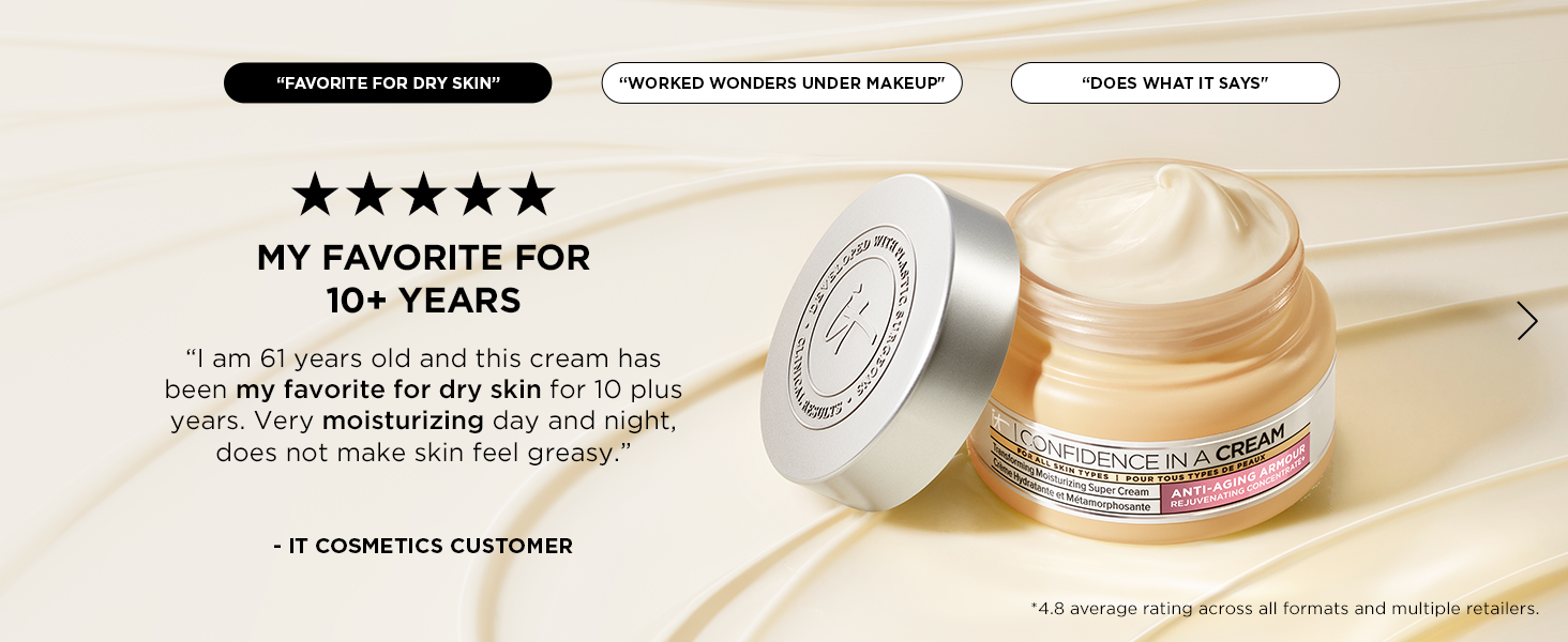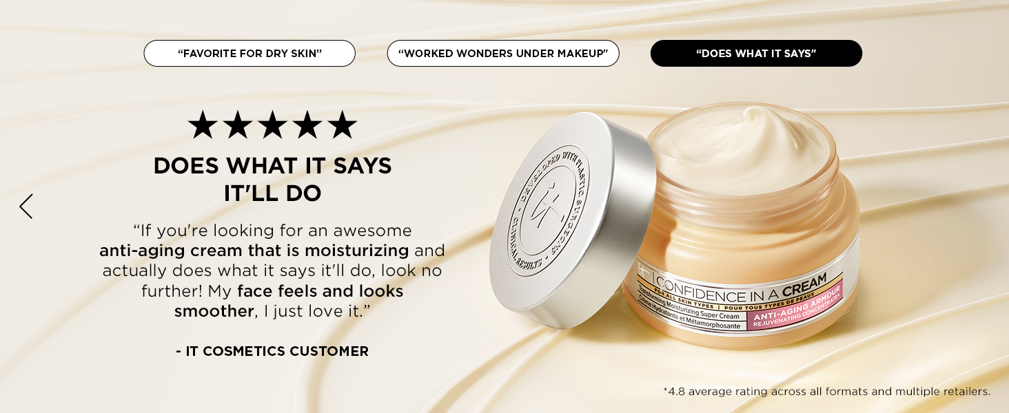 "There are surgical procedures to help improve the look of aging, but the first step to help address visible signs of premature skin aging is an effective skincare product. Confidence in a Cream is a one-step, supercharged, gentle moisturizer that helps repair the skin’s moisture barrier with continued use, promotes skin firmness and elasticity and is clinically tested to help reduce the look of fine lines and wrinkles."